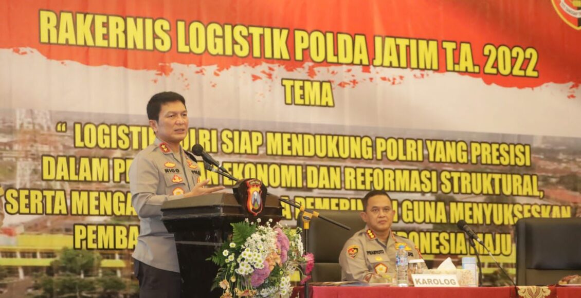 SURABAYA,ikagawanews.id – Kapolda Jatim memberikan pengarahan dan penekanan dalam acara Rapat Kerja Teknis (Rakernis) Fungsi Logistik Polda Jatim T.A. 2022 dan Pelatihan Peningkatan Kemampuan Operator Aplikasi Simak Sakti BMN, pada Selasa (21/6/2022) di hotel Wyndham Surabaya.