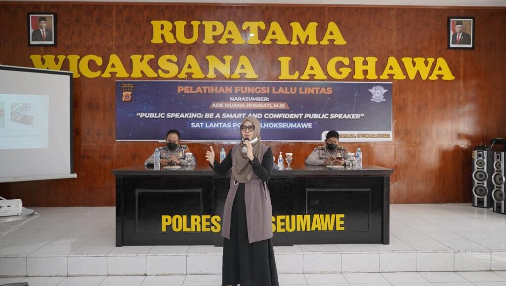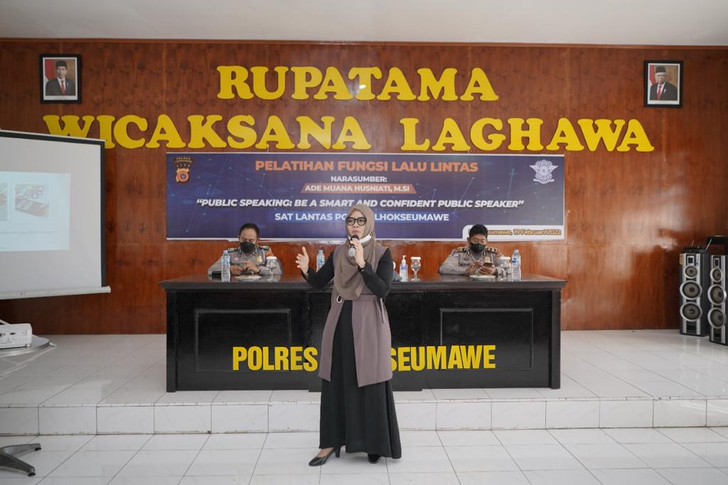 Kapolres Lhokseumawe AKBP Eko Hartanto SIK MH melalui Kasi Humas Salman Alfarisi SH MM mengatakan, kegiatan pelatihan dengan tema “Public speaking: Be a Smart and Confident Public Speaker” tersebut dipimpin oleh Kasat Lantas, AKP Vifa Febriana Sari SH SIK MH.
