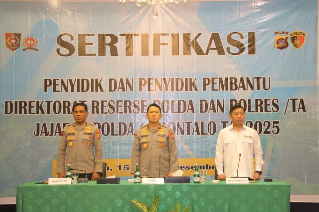 Oleh karena itu Polda gorontalo pada hari rabu 17 desember 2025 melaksanakan sertifikasi kepada para penydik polda dan jajaran polres . Kegiatan tersebut dibuka langsung oleh kapolda gorontalo Irjen Pol Widodo SH., MH.