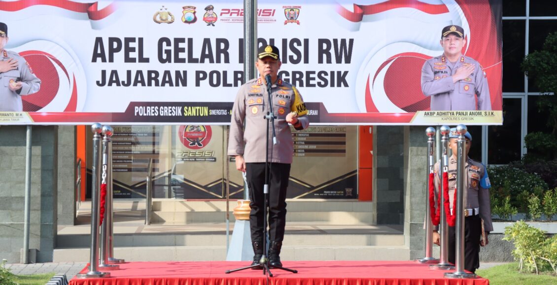 GRESIK,ikagawanews.id – Kapolres Gresik AKBP Adhitya Panji Anom memimpin Apel gelar Polisi RW di lapangan Mapolres Gresik. Senin (22-05-2023).