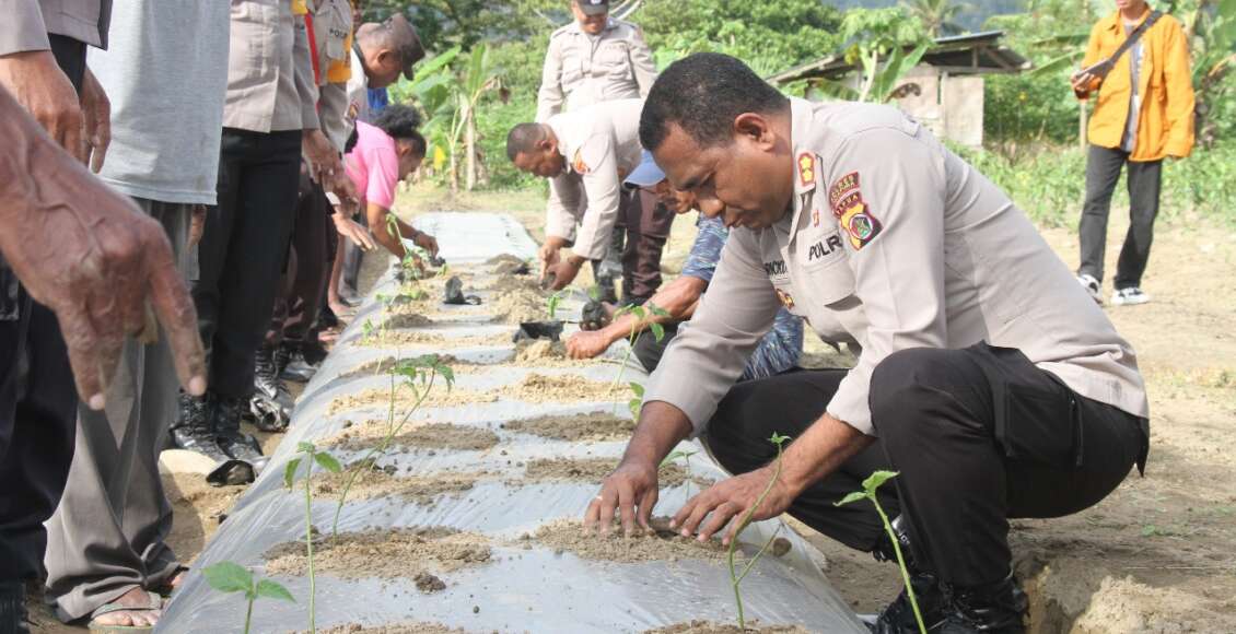 Tingkatkan Perekonomian Warga, Kapolres Jayapura Tanam Cabai Bersama Kepala Kampung