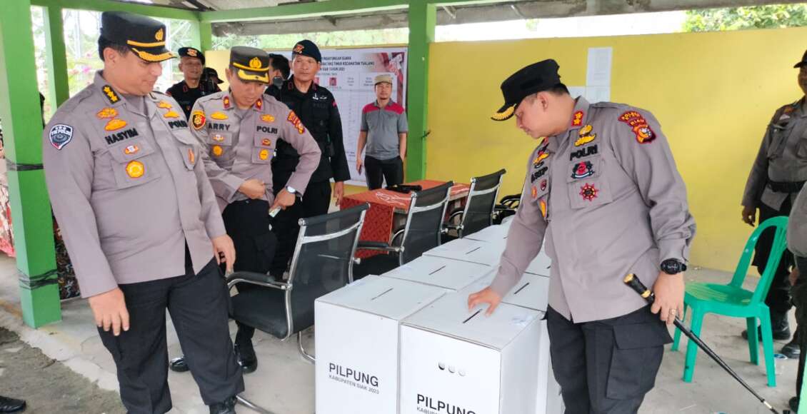 Tinjau Keamanan Pilpung, Pamwatwil Kab. Siak dan Kapolres Siak Lakukan Pengecekan Personil Dalam Pelaksanaan Pleno Terbuka di Kp. Ps. Timur