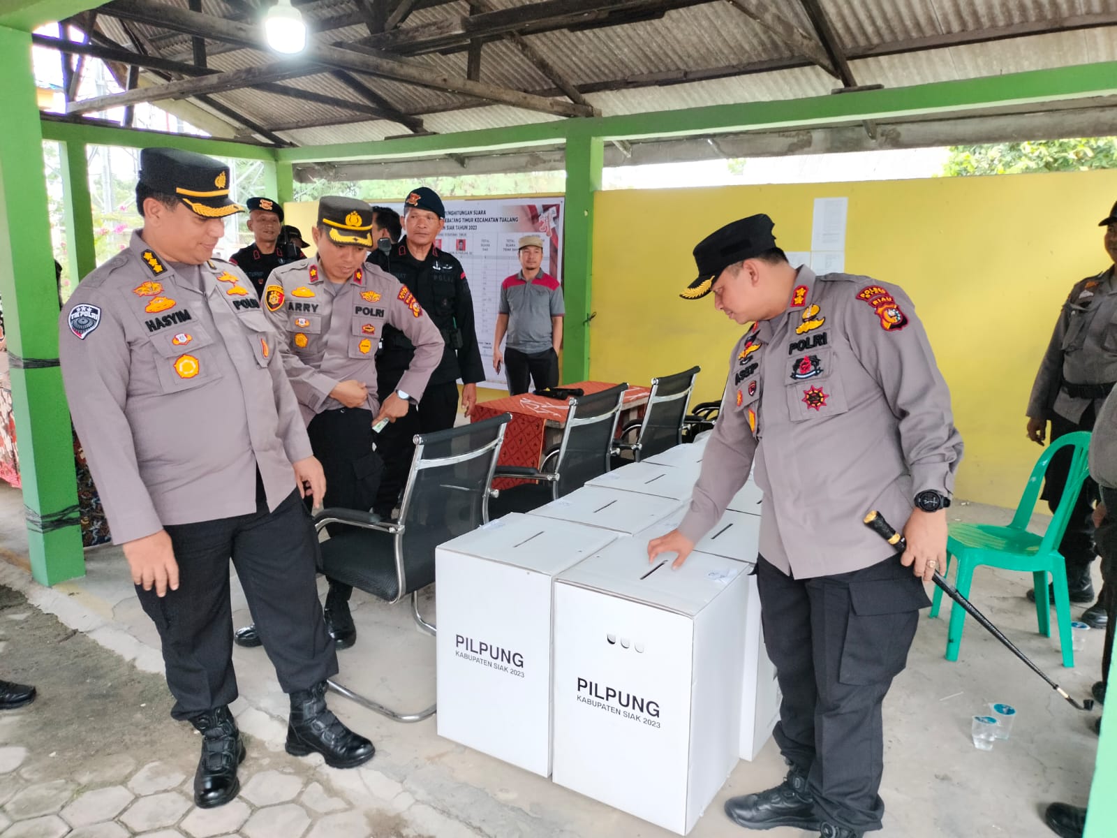Tinjau Keamanan Pilpung, Pamwatwil Kab. Siak dan Kapolres Siak Lakukan Pengecekan Personil Dalam Pelaksanaan Pleno Terbuka di Kp. Ps. Timur