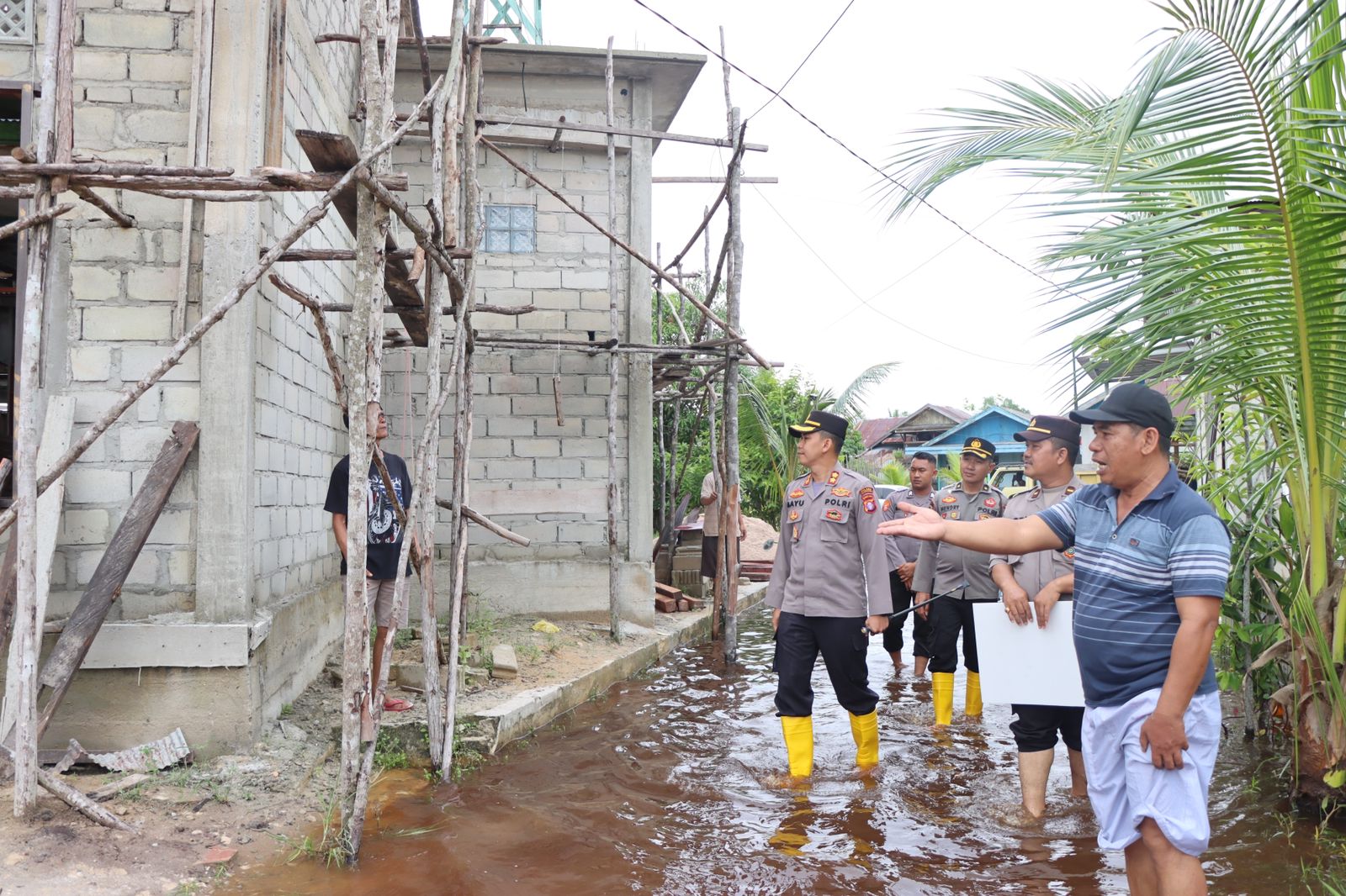 Tinjau Pembangunan Mushola Hidayatul Hasanah,Kapolres Kobar Didampingi PJU Polres Kobar Saluran Bantuan Material Semen
