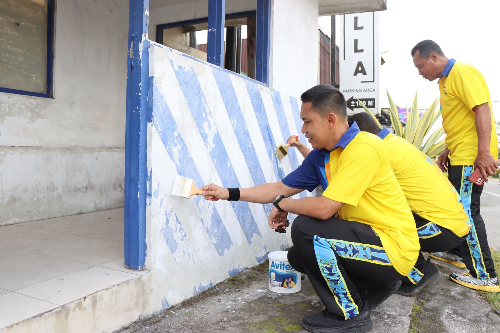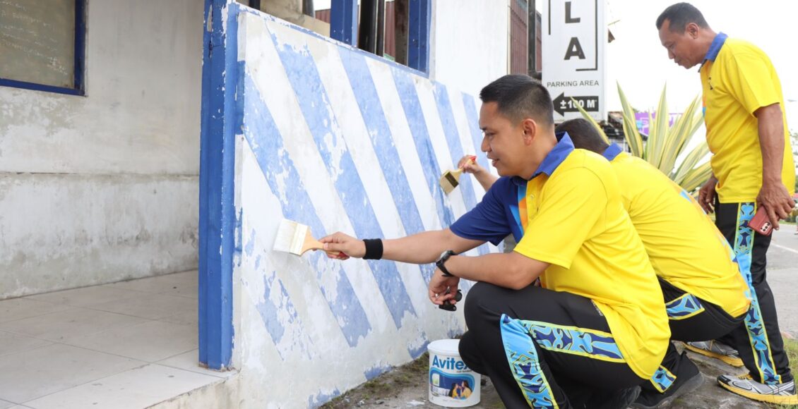 Kegiatan pengecatan dilakukan bersama-sama sebagai wujud rasa memiliki terhadap bangunan Pos Lantas.(Red/Hum)
