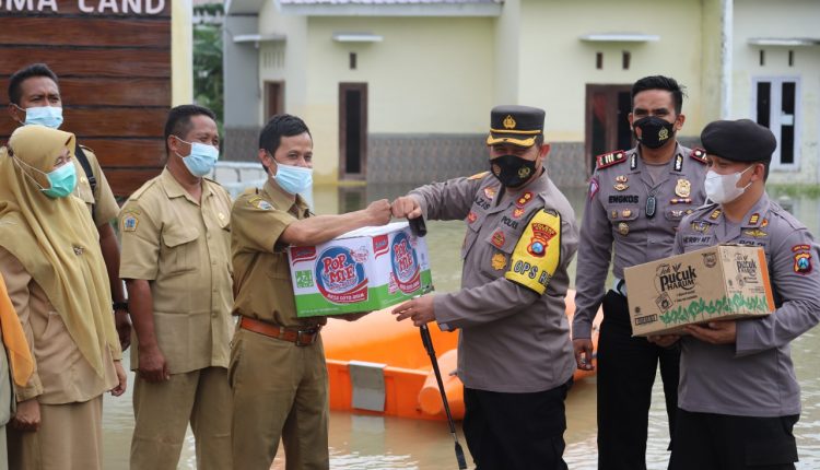Sementara itu Kapolres Gresik AKBP Mochamad Nur Azis memberikan bantuan kepada warga terdampak banjir. Bantuan diserahkan di Kecamatan Benjeng dan langsung kepada warga di perumahan Prisma Land, Kecamatan Cerme.