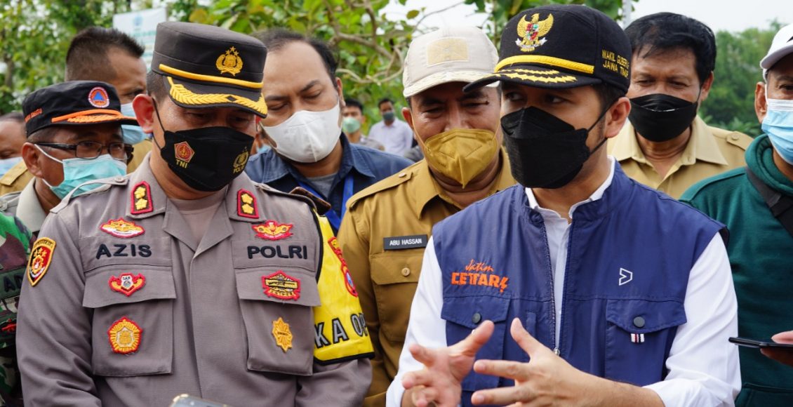 GRESIK,ikagawanews.id – Wakil Gubernur Jawa Timur, Emil Elestianto Dardak bersama rombongan meninjau tanggul jebol yang berada di desa Cermen, Kecamatan Kedamean, Kabupaten Gresik. Tanggul Jebol itu berada di depan Balai Desa Cermen.Senin(08-11-2021)