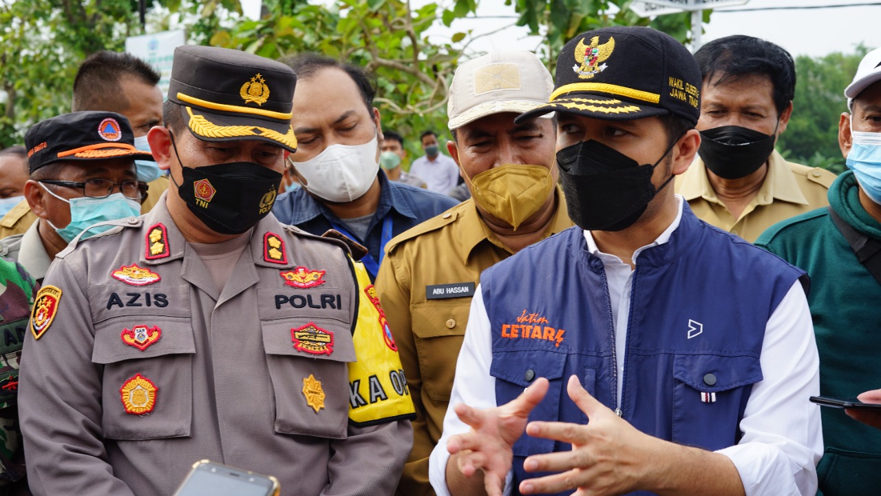Emil didiampingi Kapolres Gresik, AKBP Mochamad Nur Azis,SH,SIK,MSi dan Muspika Kecamatan Kedamean bersama Kepala Desa Cermen, Suhadi. Tampak hadir Asisten III Pemkab Gresik Abu Hassan dan Kepala BPBD Gresik, Tarso Sagito.