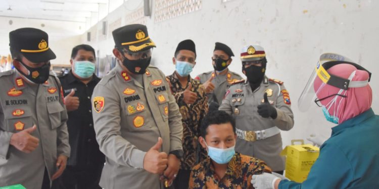 “Iya benar, hari ini ada dua Ponpes yang menggelar vaksinasi serentak yakni Ponpes Al Kautsar Kecamatan Durenan dan Ponpes Raden Paku di Kecamatan Trenggalek.” Jelas AKBP Dwiasi.