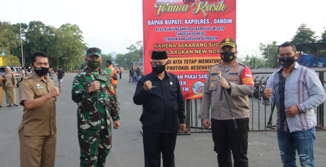 Kapolres Malang AKBP Hendri Umar, SIK, MH. Mengatakan, Kedatangan Rombongan Forpimda Kab. Malang di Pos Chek Point Covid-19, Kampung Wisata Tangguh Semeru Stadion Kanjuruhan Kec. Kepanjen Kab. Malang disambut oleh Kepala Dispora, Kepala UPTD Stadion Kanjuruhan, Ketua KADIN Kab. Malang, Kapolsek Kepanjen.