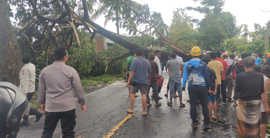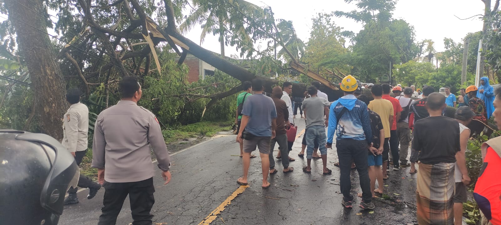 “Akibatnya ada dua pohon yang tumbang, batang pohon yang tumbang ukurannya lumayan besar sehingga menutup total akses jalan dari kedua arah,” katanya.