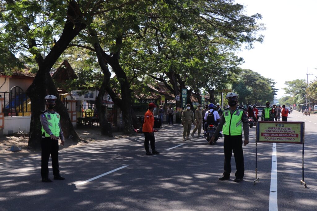 Kapolres Ponorogo AKBP Mochamad Nur Azis, S.H., S.I.K., M.Si melalui Kabag Ops Polres Ponorogo Kompol Basuki Nugroho, S.Sos menyampaikan, bahwa dalam pelaksanaan kegiatan ops yustisi gabungan, personil akan Tegas namun tetap humanis dalam menindak warga yang tidak patuhi prokes.
