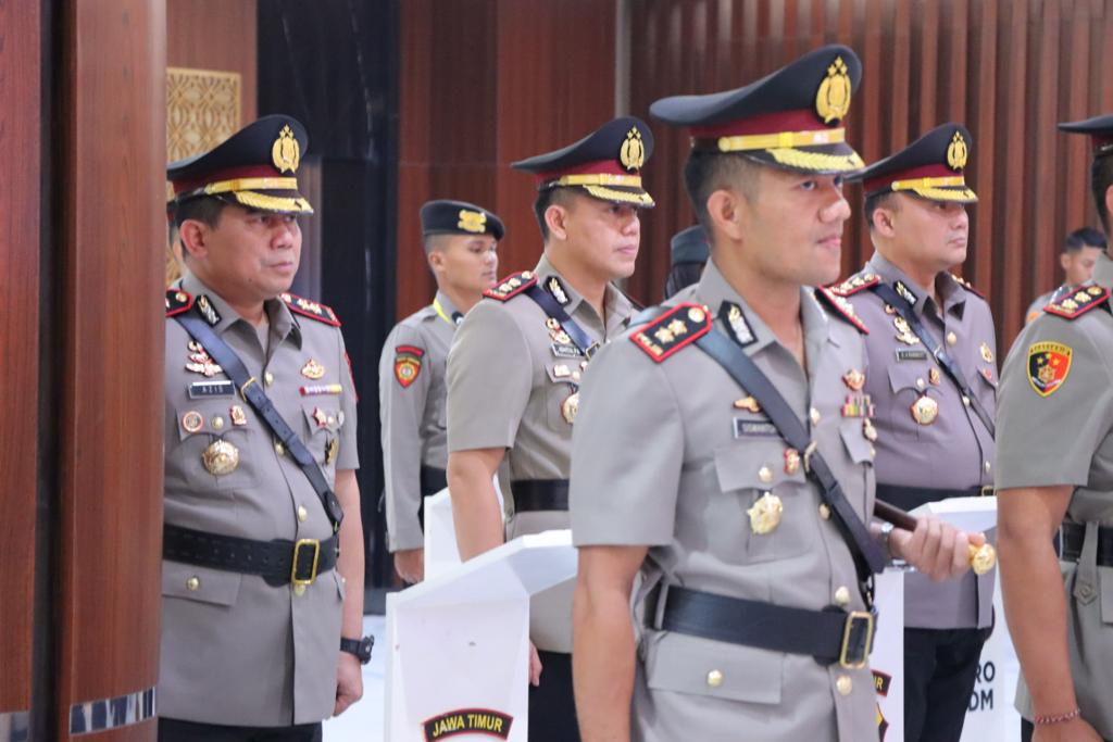 GRESIK,ikagawanews.id – Kapolda Jatim Irjen Toni Harmanto pimpin serah terima jabatan (sertijab) jabatan Kabid Propam – Dansat Brimob – Kapolres di jajaran Polda Jatim, Kamis (19/1/2023) di Gedung Patuh Mapolda Jatim. Tongkat Kapolres Gresik bergeser dari AKBP Mochamad Nur Azis menjadi AKBP Adhitya Panji Anom.