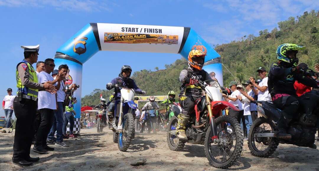 Ditandai dengan pengibaran bendera start, ratusan peserta diberangkatkan oleh Kapolres Kebumen AKBP Burhanuddin dari objek wisata Puranggga, Desa/ Kecamatan Karanggayam, Minggu 3 September 2023.