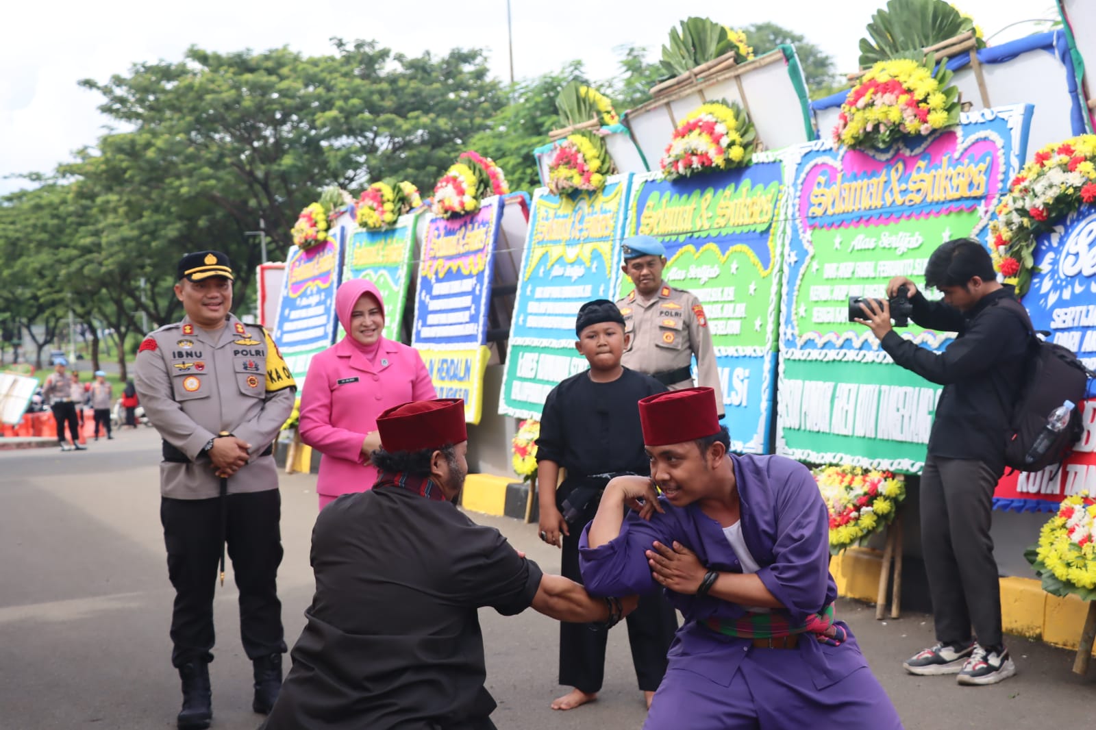 Kegiatan yang dilaksanakan pada kamis (17/1/2024) pagi tersebut dimulai dengan tradisi palang pintu untuk menyambut (welcome Parade) Kapolres Tangerang Selatan AKBP Ibnu Bagus Santoso, S.I.K., M.M., M.H. dilanjutkan dengan tradisi pedang pora.