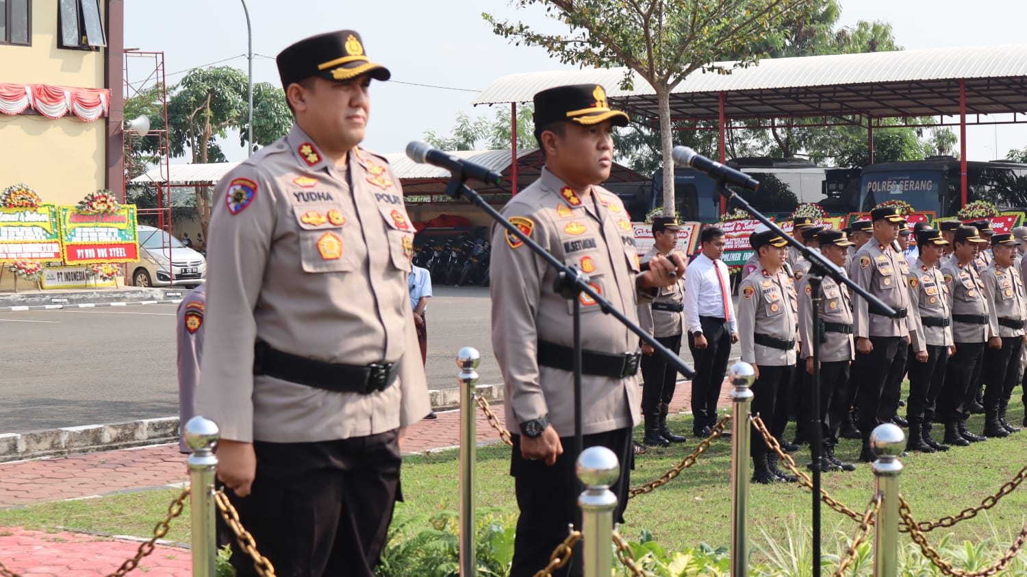 Kasihumas Polres Serang Iptu Dedi Jumhaedi Mengatakan Kegiatan Setelah acara penyanbutan dilanjutkan Apel Kesatuan di lapangan hijau Polres Serang dan dilanjutkan kegiatan Laporan Kesatuan diaula Polres Serang.
