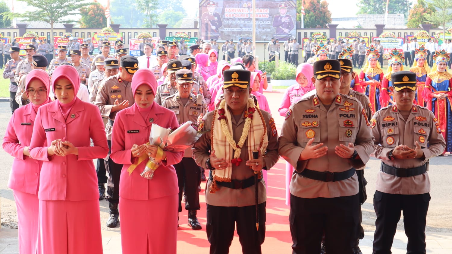 Rangkaian Acara Farawell Parade diawali dengan Penyambutan Kapolres Serang AKBP Wiwin Setiawan SiK MH dan Ny. Mira Wiwin Setiawan dengan simbol pengalungan bunga dan pemberian bunga oleh Wakapolres Serang Kompol Rifki Sefterian Yusuf SIK MH didampingi Ny. Chendy Rifki Sefterian dan seluruh PJU Polres Serang , Para Kapolsek Jajaran, Pengurus Bhayangkari Cabang Serang dan Personil Polres Serang.