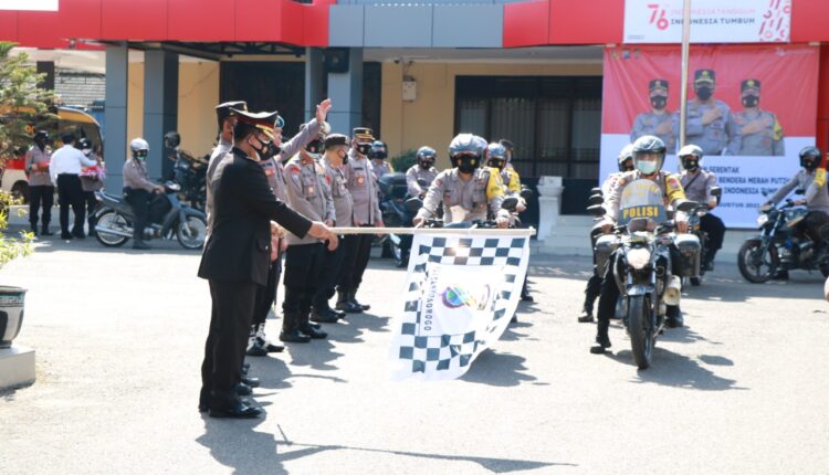Tumbuhkan Semangat Nasionalisme Jelang Kemerdekaan RI ke 76, Polres Ponorogo Bagikan Bendera Merah Putih