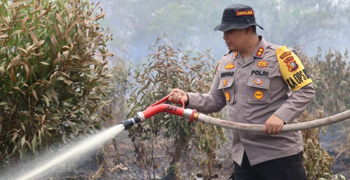 DUMAI, ikagawanews.id – Dibawah terik sinar matahari, Kapolres Dumai AKBP Dhovan Oktavianton, S.H, S.I.K, M.Si pimpin langsung upaya pemadaman Kebakaran Hutan dan Lahan (Karhutla) di Kelurahan Tanjung Palas Kecamatan Dumai Timur, Selasa (27/2/2024).