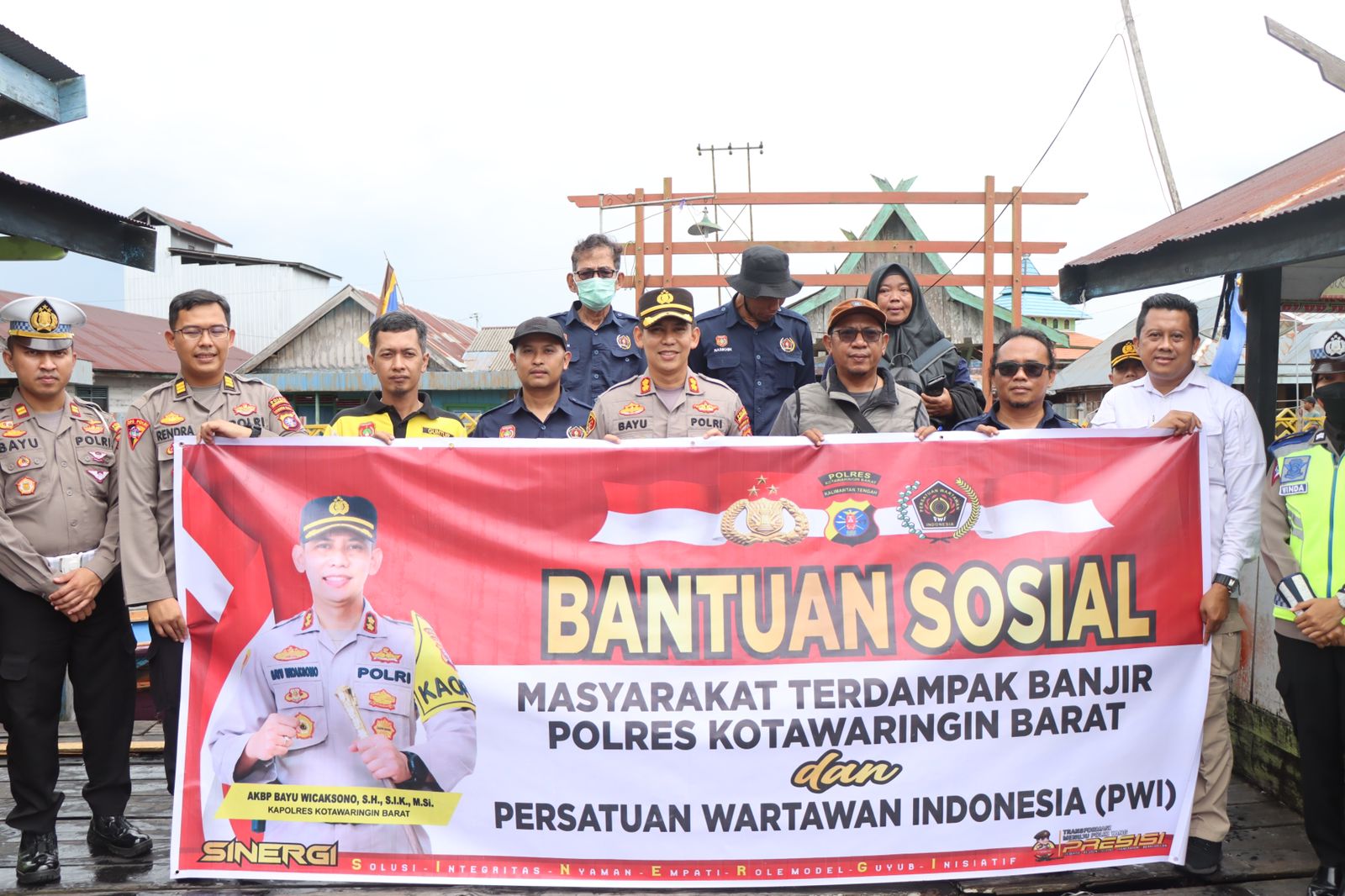 Bayu Wicaksono mengatakan bahwa kegiatan ini merupakan bagian dari sinergi yang baik antara Polres Kotawaringin Barat dengan PWI untuk hadir ditengah-tengah kesulitan masyarakat terdampak banjir dengan menyerahkan bantuan sosial berupa sembako serta obat-obatan di Desa Raja Seberang.