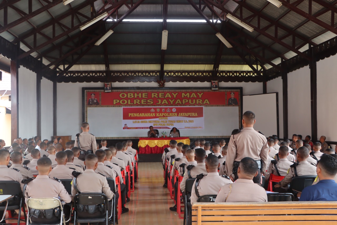 Dalam arahannya, Kapolres Jayapura AKBP Frederickus W.A Maclarimboen, S.IK., MH menyampaikan terimakasih kepada Siswa diktuk Bintara Polri Tahun 2022 SPN Polda Papua selama sebulan, sudah melaksanakan latihan kerja di Polres Jayapura.