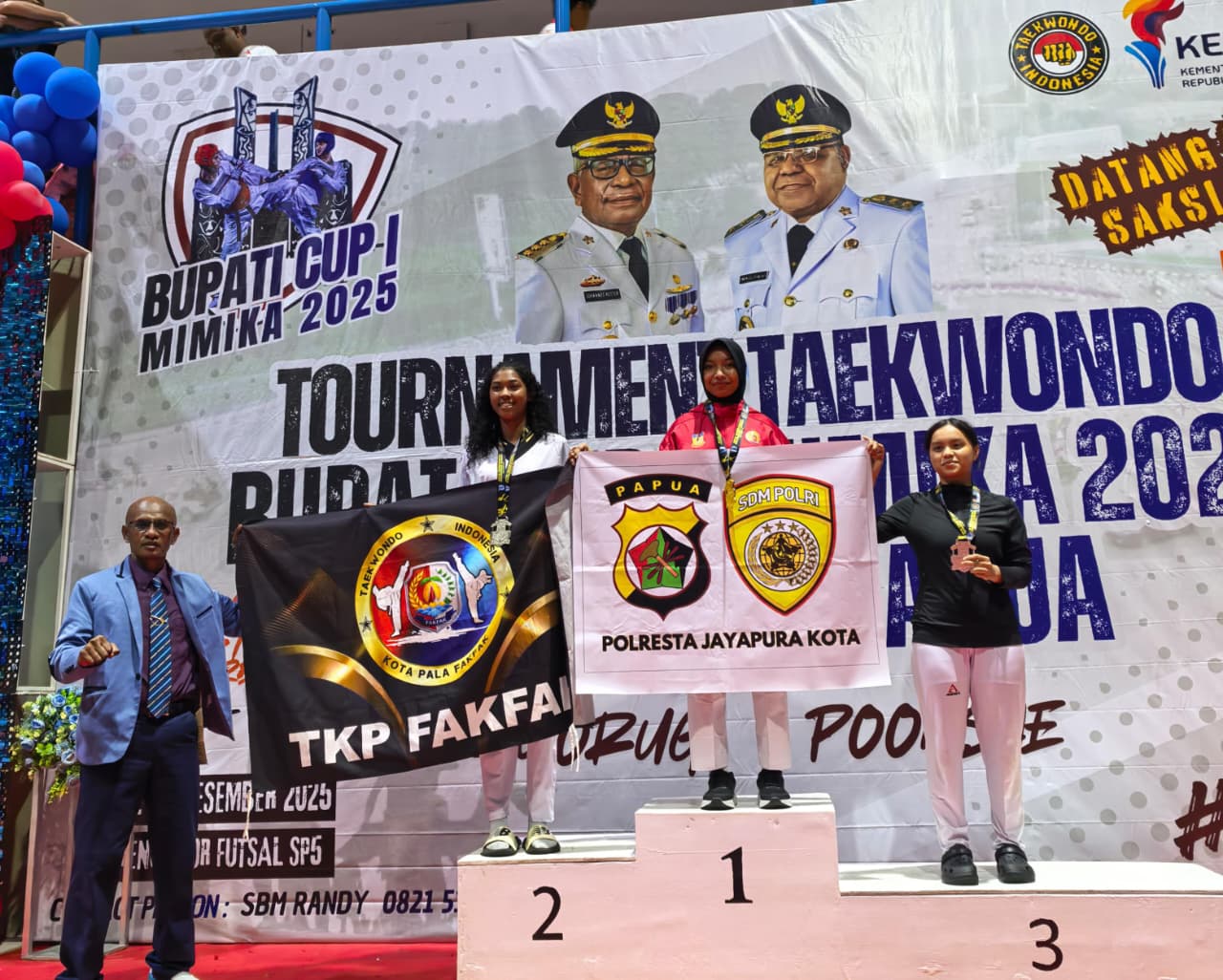 Jayapura Kota,ikagawanews.id – Prestasi membanggakan kembali ditorehkan dua personel Polresta Jayapura Kota dalam ajang Kejuaraan Bupati Cup I Mimika Tahun 2025 yang berlangsung di GOR Futsal SP 5 Kabupaten Mimika, Papua Tengah, Jumat 12 Desember hingga Minggu 14 Desember 2025.