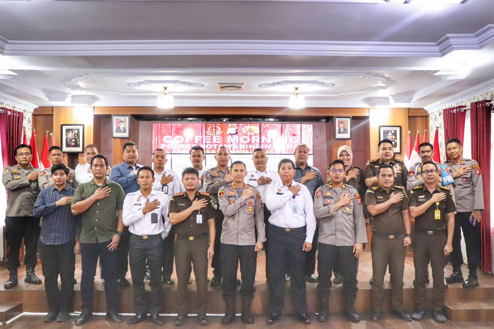 KOTAWARINGIN BARAT,ikagawanews.id – Dalam kegiatan yang diinisiasi oleh Kapolres Kobar AKBP Bayu Wicaksono, S.H., S.I.K., M. Si., menyampaikan bahwa kegiatan Coffee morning ini dilaksanakan dalam rangka membangun sinergitas demi mewujudkan penegakan hukum yang profesional dan berkeadilan dalam menjalankan tugas dilapangan sehingga kendala yang dihadapi dalam pelaksanaan tugas dapat saling memberikan masukan dan juga solusi yang tepat antar aparat penegak hukum serta dapat terjalinnya komunikasi yang baik dan mempererat tali silaturahmi, rabu 22 Februari 2023 pukul 08.40 WIB telah dilaksanakan Coffee Morning Polres Kotawaringin Barat di Aula Satya Haprabu.