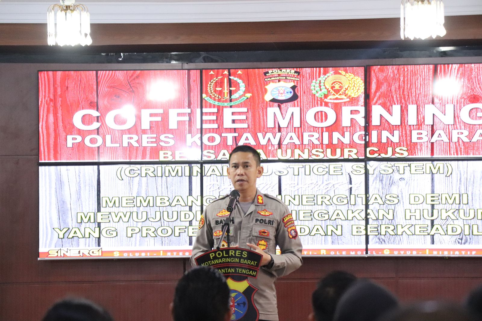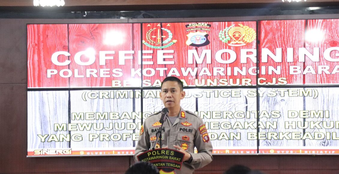 KOTAWARINGIN BARAT,ikagawanews.id – Dalam kegiatan yang diinisiasi oleh Kapolres Kobar AKBP Bayu Wicaksono, S.H., S.I.K., M. Si., menyampaikan bahwa kegiatan Coffee morning ini dilaksanakan dalam rangka membangun sinergitas demi mewujudkan penegakan hukum yang profesional dan berkeadilan dalam menjalankan tugas dilapangan sehingga kendala yang dihadapi dalam pelaksanaan tugas dapat saling memberikan masukan dan juga solusi yang tepat antar aparat penegak hukum serta dapat terjalinnya komunikasi yang baik dan mempererat tali silaturahmi, rabu 22 Februari 2023 pukul 08.40 WIB telah dilaksanakan Coffee Morning Polres Kotawaringin Barat di Aula Satya Haprabu.