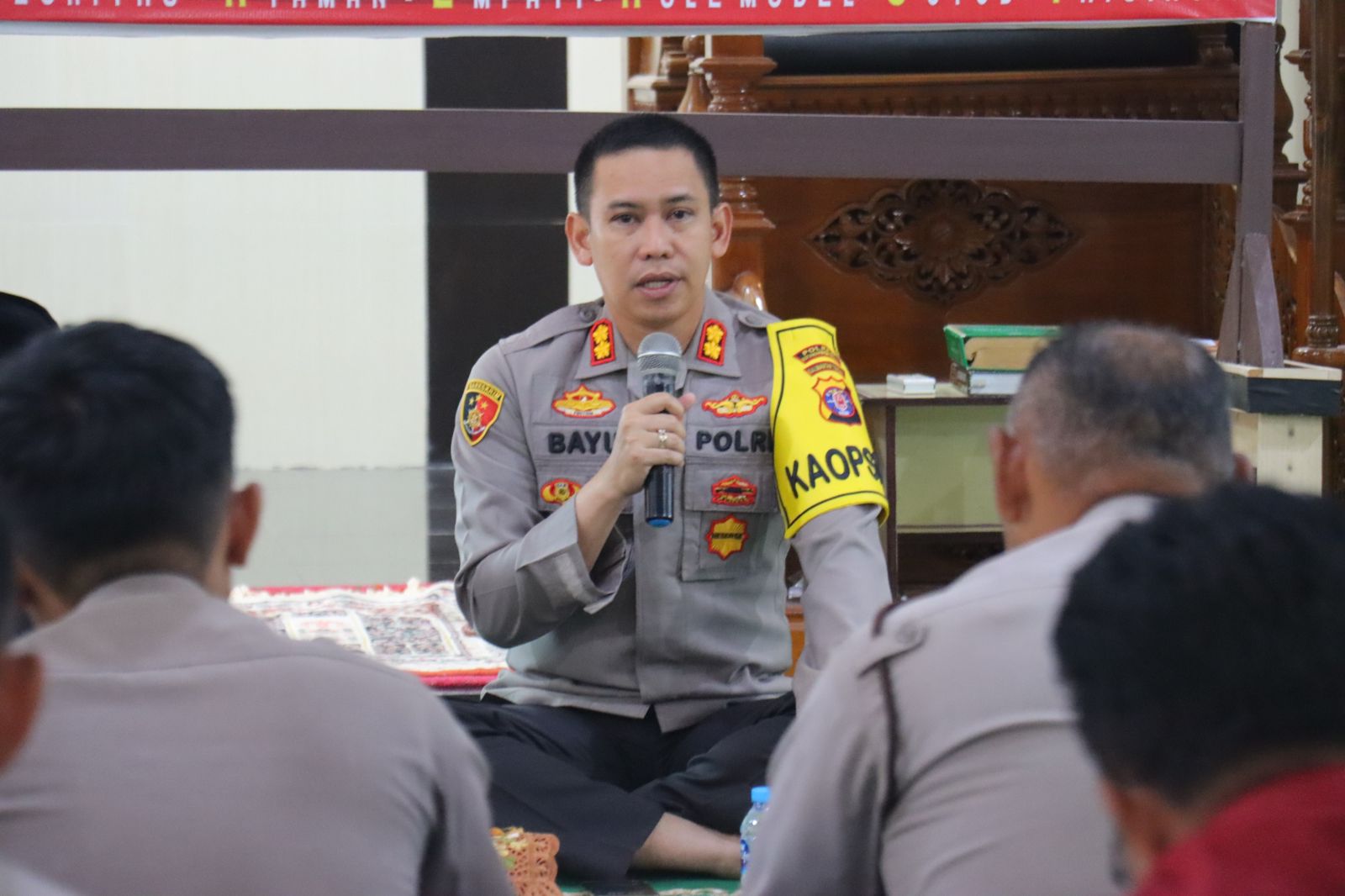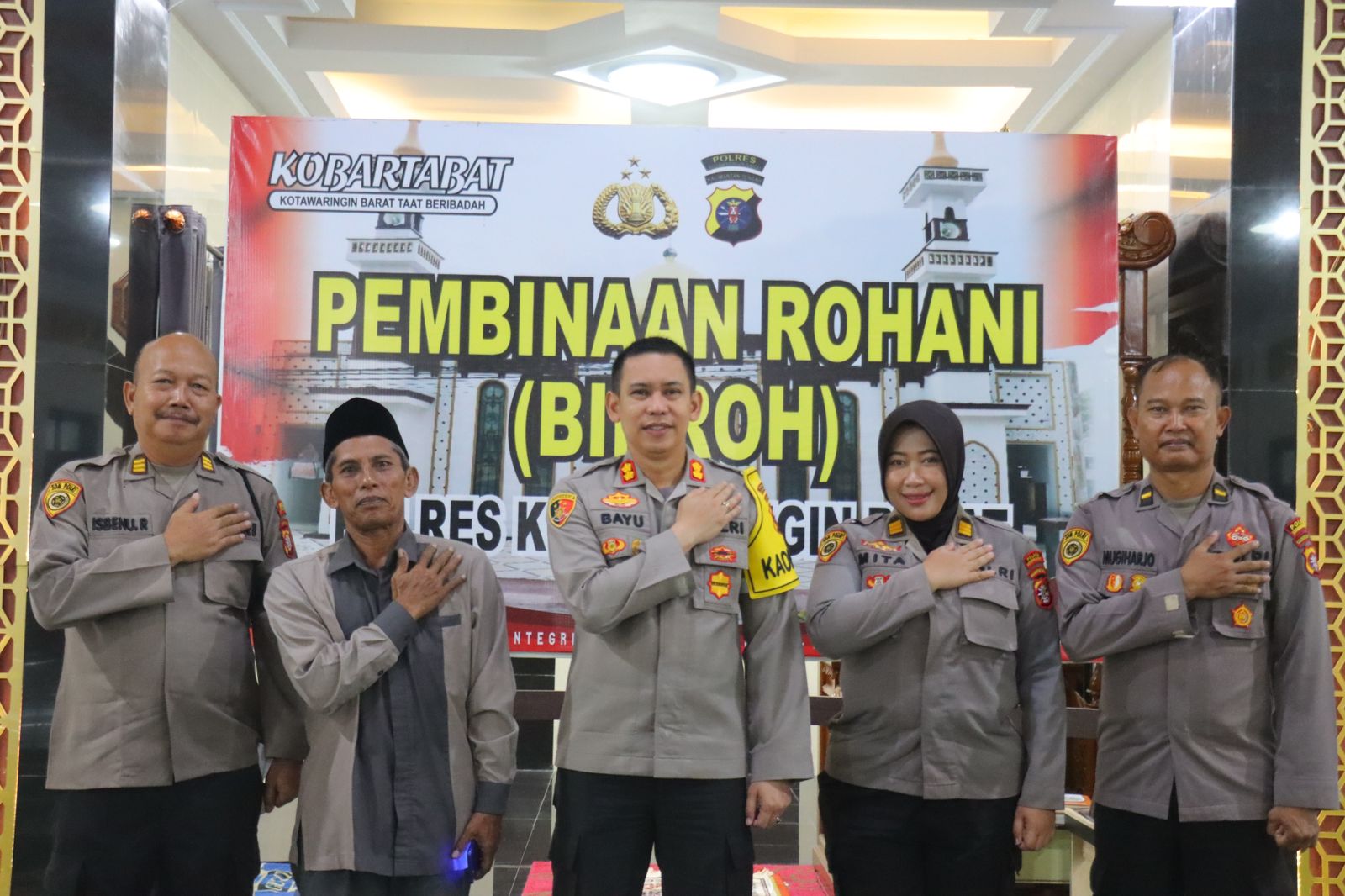 Kapolres Kotawaringin Barat AKBP Bayu Wicaksono, S.H., S.I.K., M.Si. menyampaikan Binrohtal ini bertujuan positif, yakni berguna untuk memberikan siraman rohani dan moral kepada personel Polri khususnya Personel Polres Kotawaringin Barat.