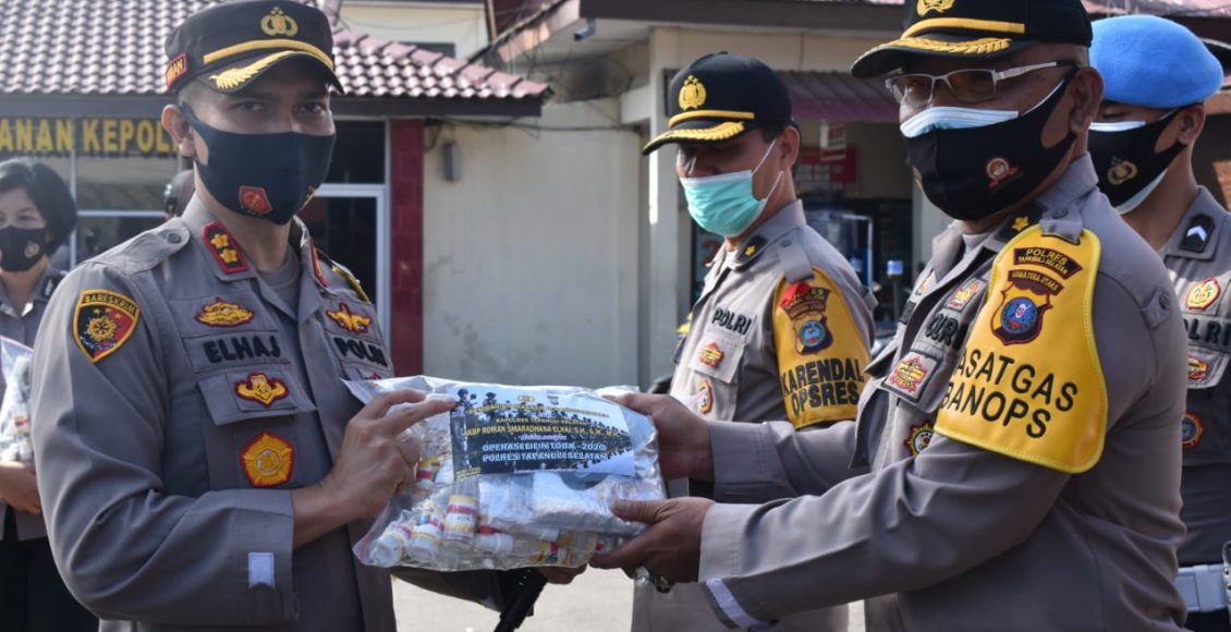 Untuk Pengamanan OPS Lilin Toba 2020, Kapolres Tapsel Bagikan APD Kepada Personil