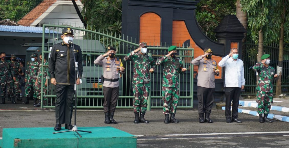 Rangkaian kegiatan apel PPKM Malang Raya dimulai dari pelaksanaan Persiapan Pasukan.