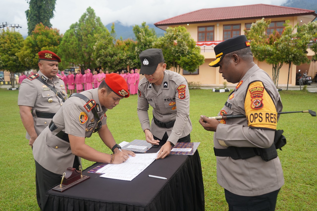 Upacara ini menandai pergantian posisi strategis di lingkungan Polres Jayapura, yakni jabatan Wakapolres, Kabag Ops, Kasat Reskrim, Kasat Samapta, serta Kapolsek Depapre. Proses pelantikan berlangsung khidmat dengan pembacaan surat keputusan, penanggalan dan penyematan tanda jabatan, serta pengambilan sumpah dan penandatanganan berita acara.