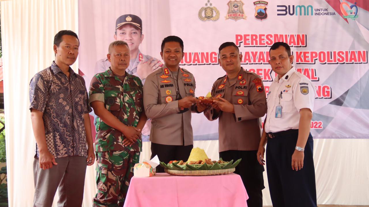 Saat peresmian gedung pelayanan Polsek Petarukan, Sabtu (12/11/2022), Kapolres Pemalang menyampaikan ucapan terima kasih kepada PT Jamkrindo yang telah mendukung terlaksananya pembangunan gedung pelayanan masyarakat.