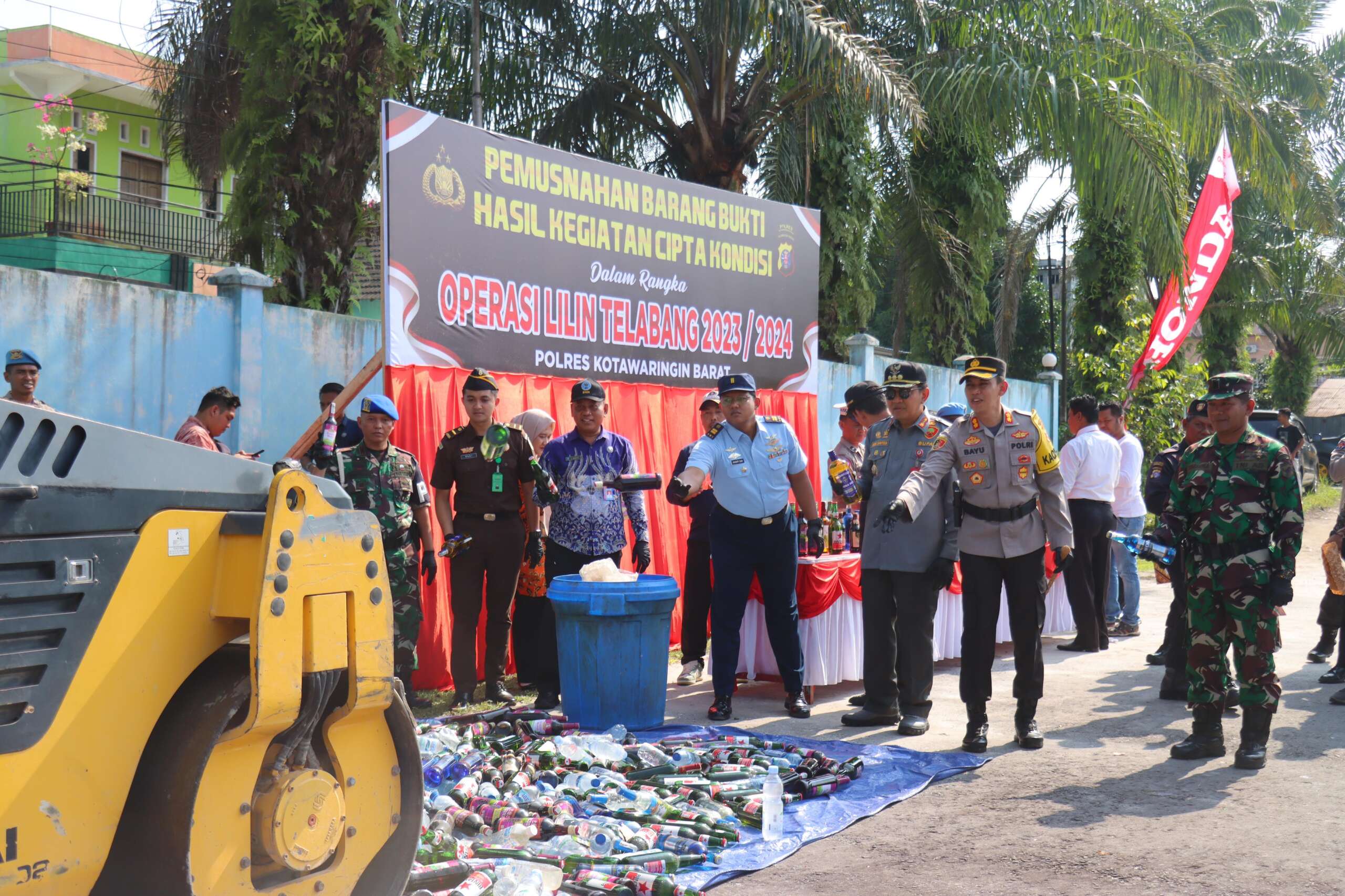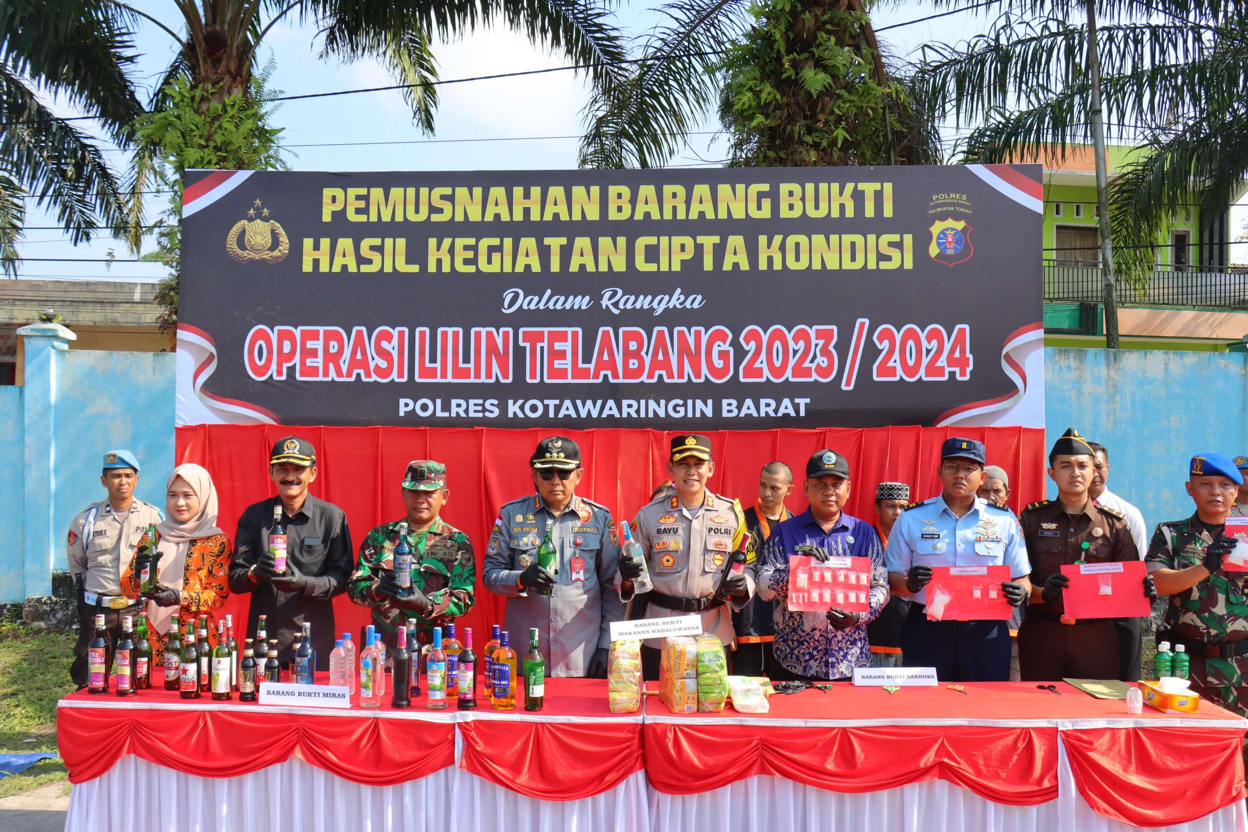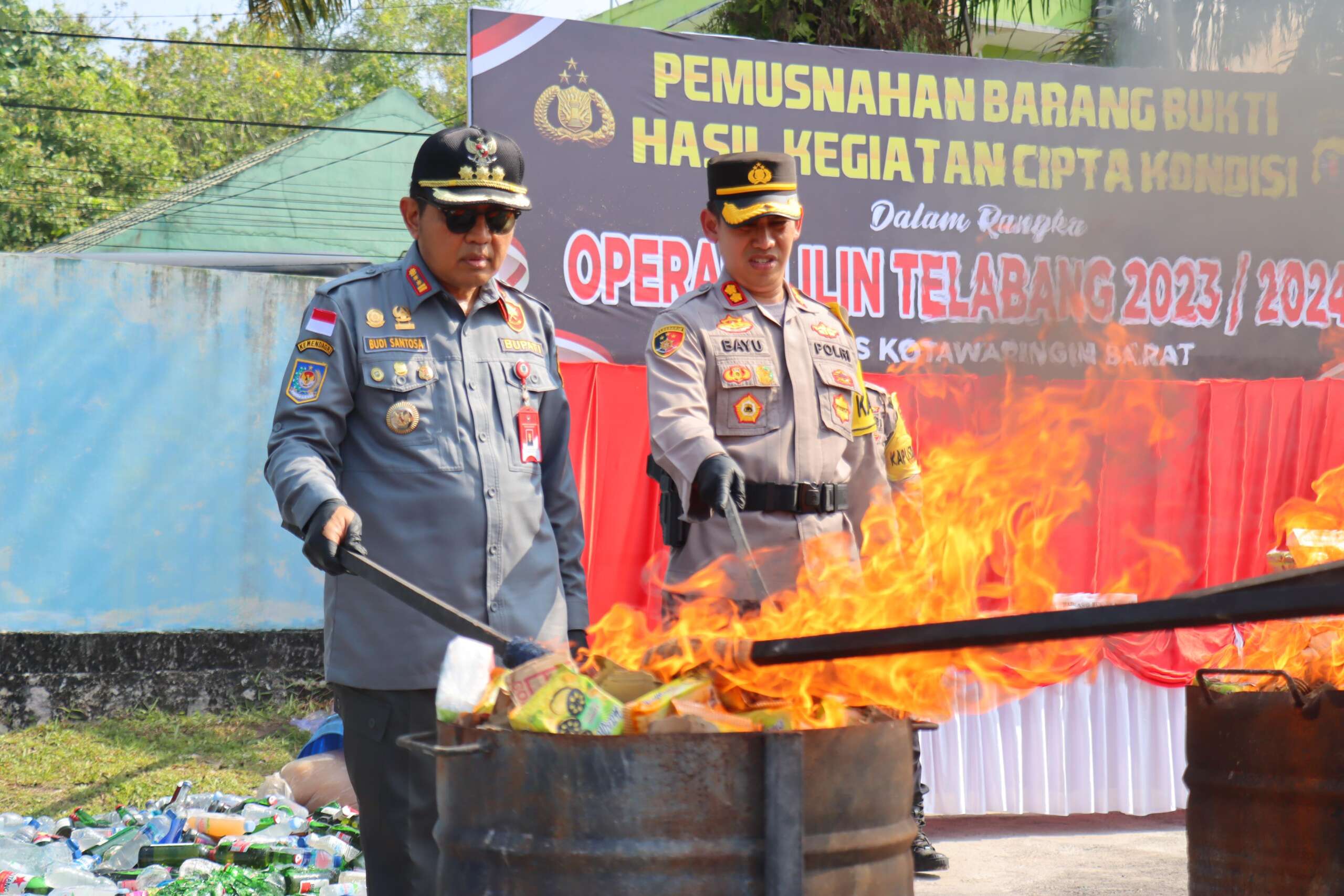 KOTAWARINGIN BARAT,ikagawanews.id – Usai Apel gelar pasukan, Polres Kotawaringin Barat menggelar kegiatan pemusnahan barang bukti hasil kegiatan cipta kondisi dalam rangka menjaga situasi kamtibmas selama Natal dan tahun baru serta selama berlangsungnya Operasi Lilin Telabang 2023,Kamis tanggal 21 Desember 2023, pukul 09.00 wib.