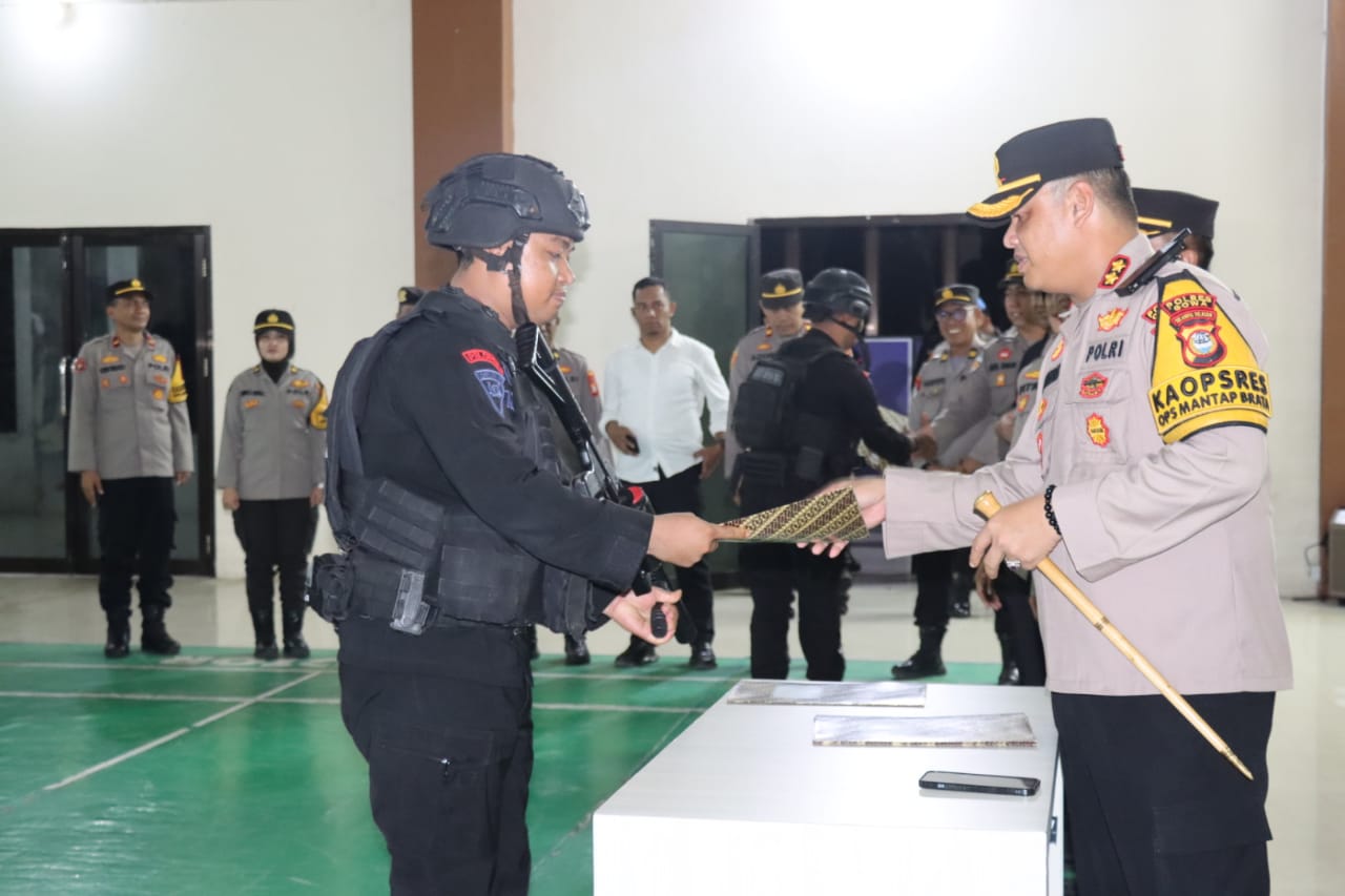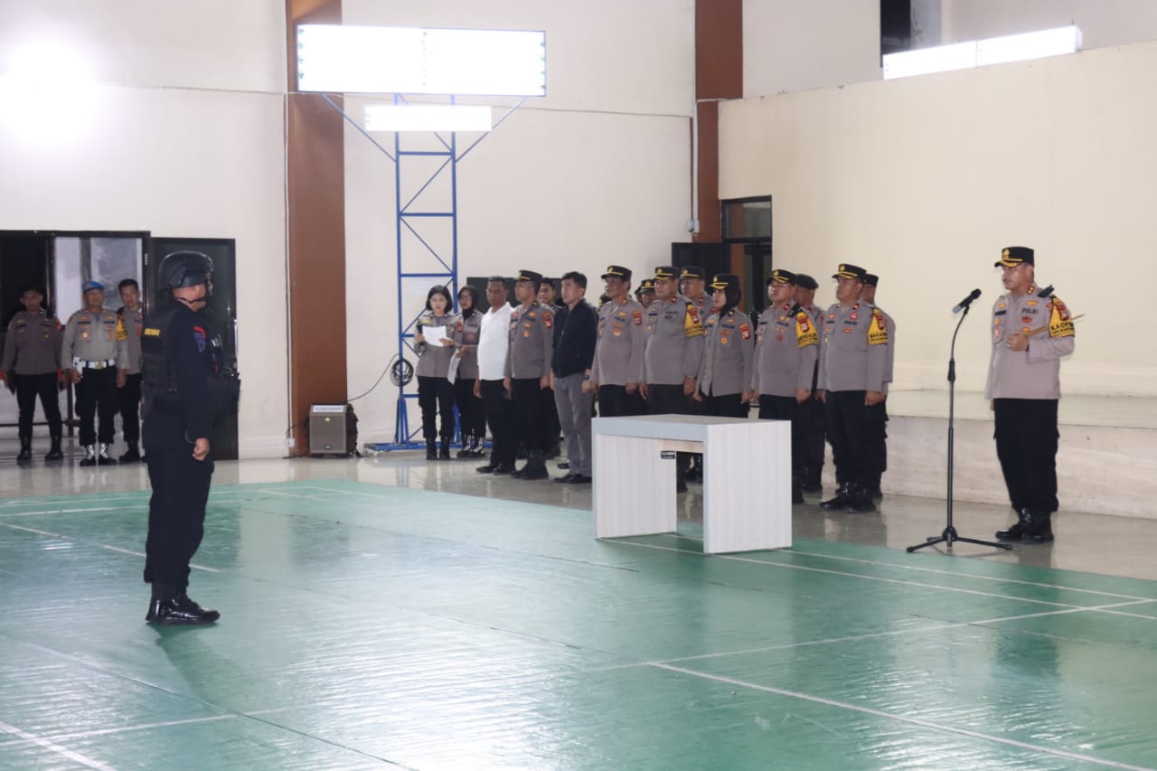 Pelepasan Personel BKO Brimob Polda Sulsel dipimpin oleh Kapolres Gowa AKBP R.T.S Simanjuntak, S.H., S.I.K., M.M., M.I.K yang juga dihadiri Wakapolres Gowa bersama para PJU Polres Gowa yang digelar di Aula Rewako Polres Gowa, Senin (26/2) malam.