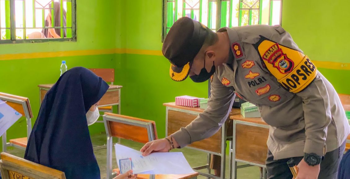 Enrekang,ikagawanews.id  – Kepala Kepolisian Resor Enrekang AKBP Dr. Andi Sinjaya,SH, S.Ik, MH, didampingi Kepala Kepolisian Sektor Enrekang AKP Anton,SH bersama direktur Pondok Pesantren Darul Falah Enrekang Ustaz Lukman secara langsung memantau pelaksanaan vaksinasi Komunitas di Pondok Pesantren Darul Falah Enrekang.