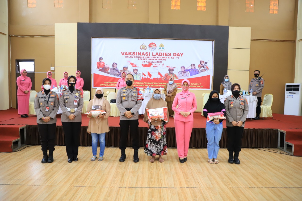 Di acara Vaksinasi Ladies Day hari ini yang berlangsung, selasa (31/08/2021) di Polres Lhokseumawe misalnya, ada 250 warga yang atusias datang dari sejumlah desa untuk disuntik vaksin yang mulai dilaksanakan dari pagi hingga sore. Selain itu petugas juga menyediakan sembako dan doorprize menarik bagi para peserta vaksin.
