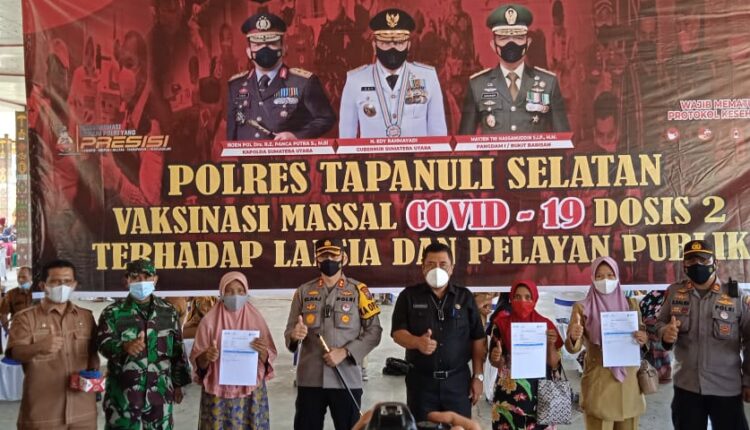 Tapsel,IKAGAWANEWS.ID – Kepala Kepolisian Resort (Kapolres)Tapsel  AKBP Roman Smaradhana Elhaj, S.H., S.I.K., M.H Bersama PJU Polres tapanuli selatan dan Stakeholder terkait Melaksanakan Peninjauan Vaksinasi Massal Covid – 19 Dosis ke ll Tahun 2021 Bagi Lansia dan pelayan Publik di Kecamatan Angkola Muara Tais Kabupaten Tapanuli Selatan.