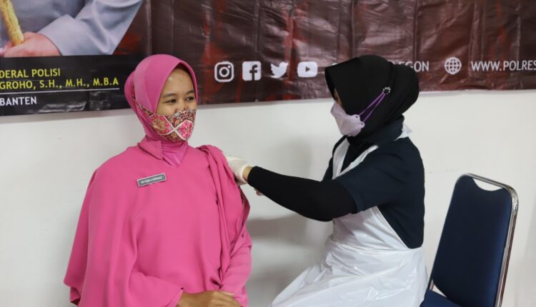 Vaksinasi Massal Polres Cilegon Polda Banten masuk rangkaian Tradisi Sambut HUT Bhayangkara Ke 75