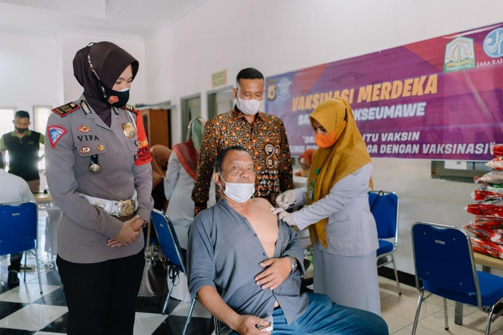 Kapolres Lhokseumawe AKBP Eko Hartanto SIK MH melalui Kasat Lantas Polres Lhokseumawe, AKP Vifa Febriana Sari, SH SIK, MH mengatakan, vaksinasi tersebut bertujuan untuk memberikan kemudahan bagi masyarakat yang ingin ikut program vaksinasi gratis.
