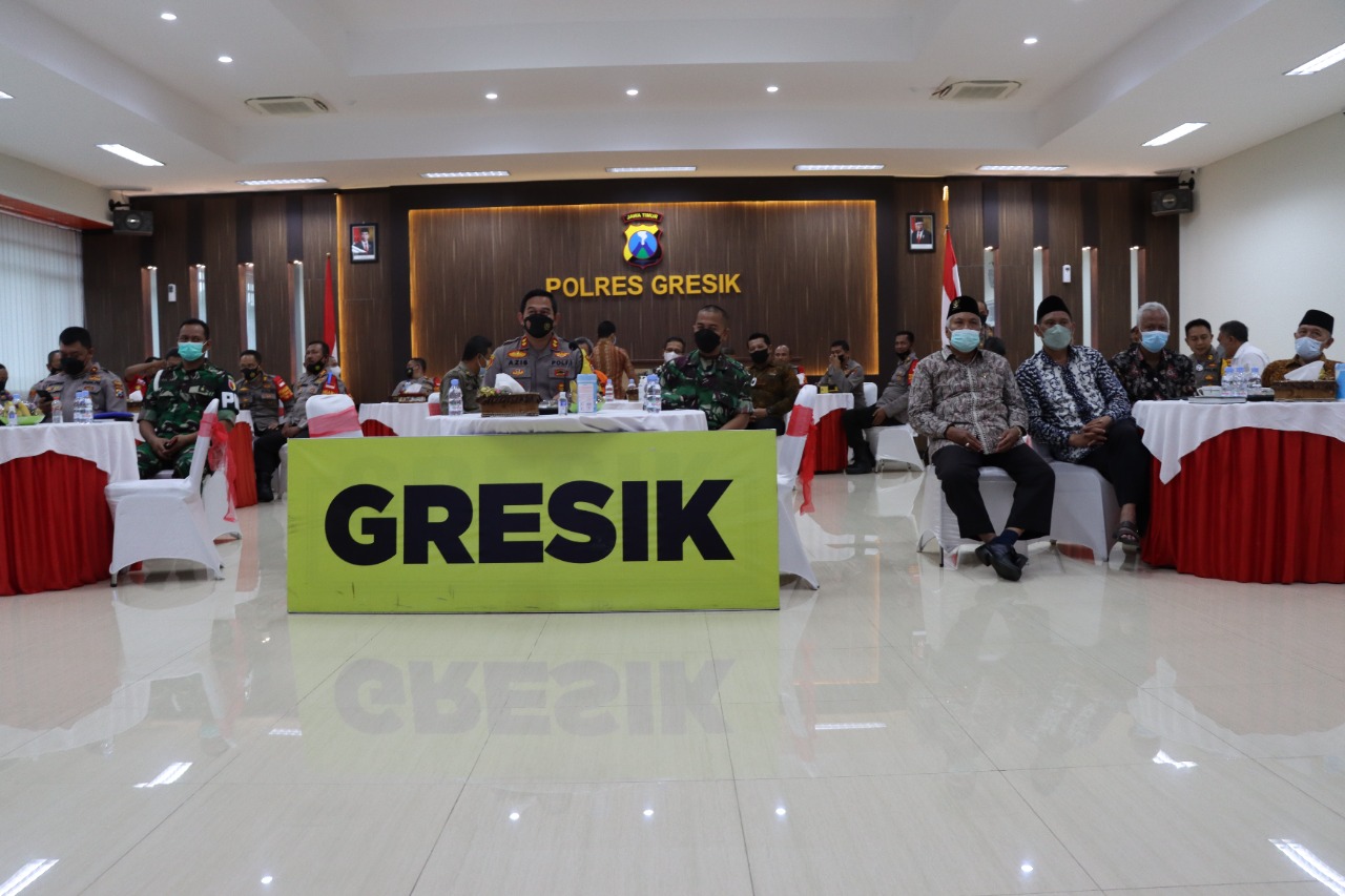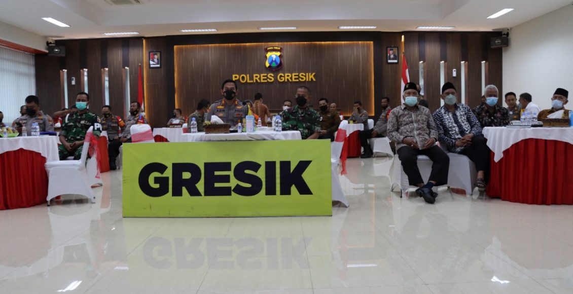Kapolres Gresik AKBP Mochmad Nur Azis menyampaikan mohon dukungan dari instansi terkait dalam mengantisipasi Potensi Lonjakan Covid – 19 Pada Perayaan Nataru.(yd/Red)