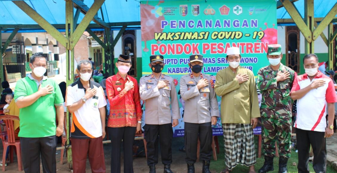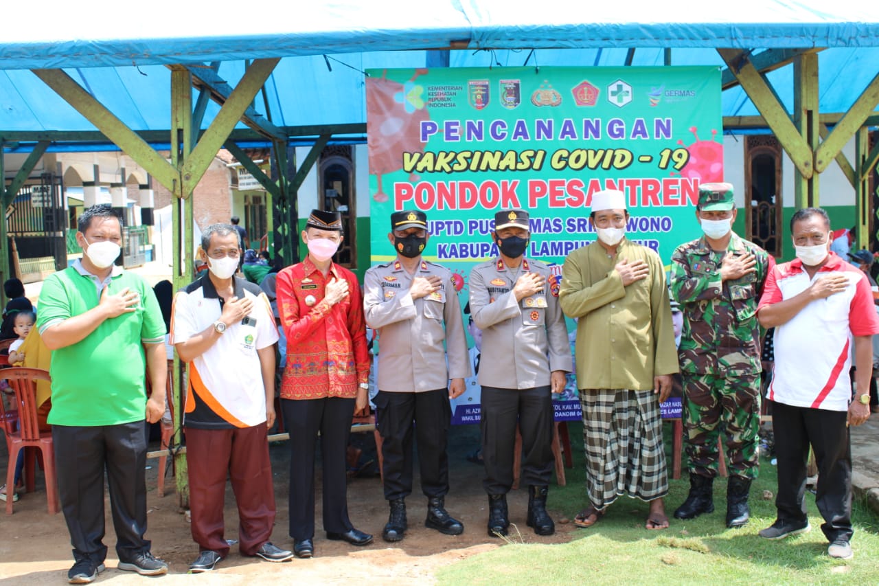 Pada proses pemantauan Vaksinasi Massal COVID-19, di Pondok Pesantren Babusalam, Kecamatan Bandar Sribawono ini, Wakapolda Lampung, didampingi oleh Kapolres Lampung Timur AKBP Zaky Alkazar Nasution, dan unsur Forkopimcam setempat.