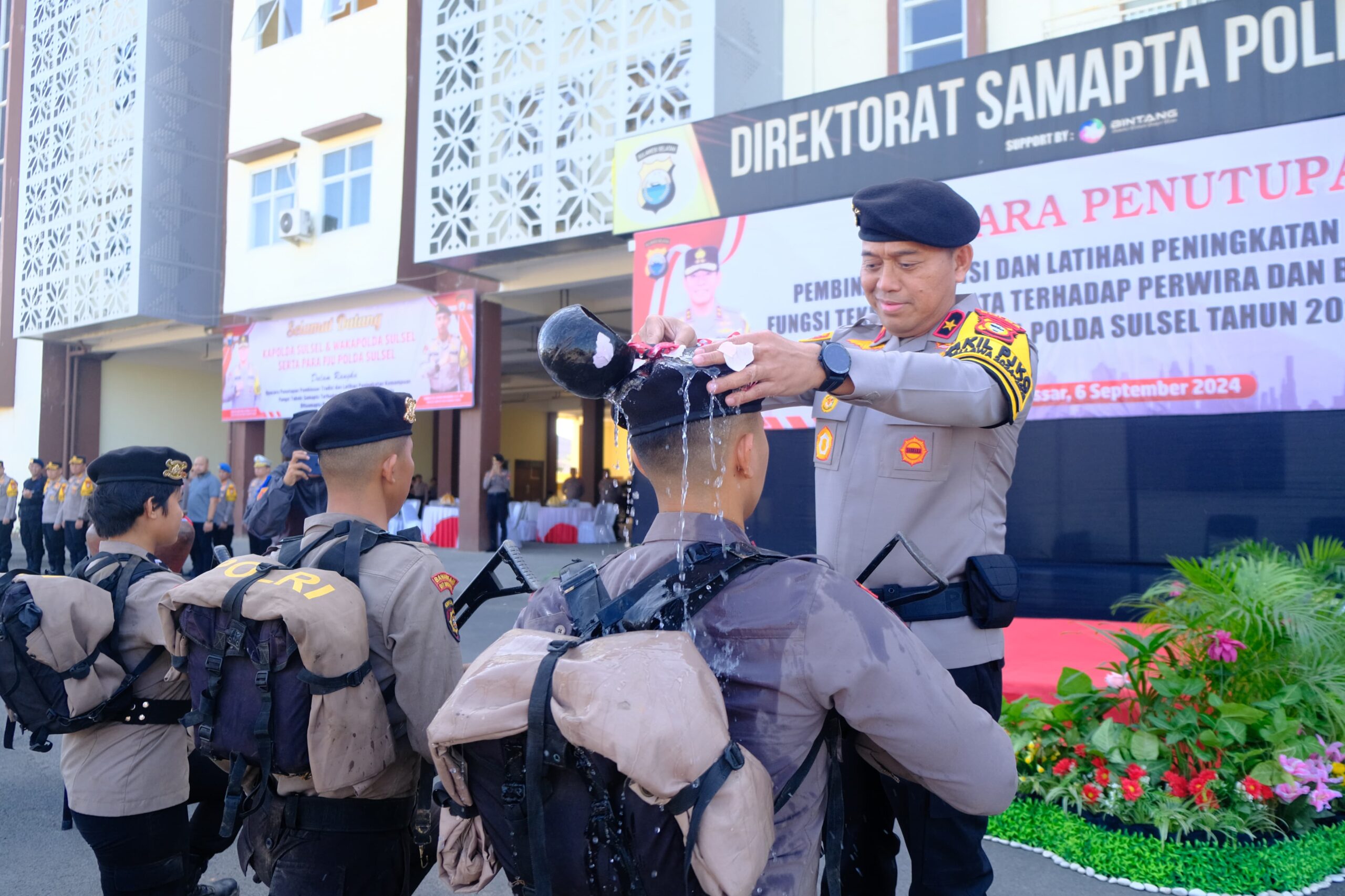SULSEL,ikagawanews.idWakapolda Sulawesi Selatan, Brigjen Pol Nasri, S.I.K., M.H., memimpin upacara penutupan pembinaan tradisi dan latihan peningkatan kemampuan fungsi teknis Samapta terhadap Perwira dan Bintara Remaja Ditsamapta Polda Sulsel, Jumat (06/09/2024), bertempat di Mako Ditsamapta Polda Sulsel.