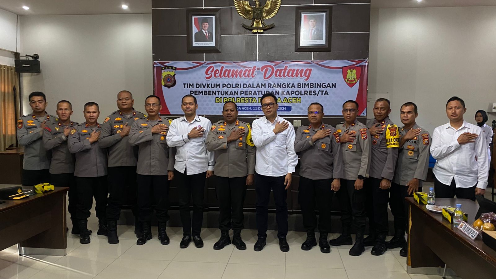 Calang,ikagawanews.id  – Wakapolres Aceh Jaya, Kompol Suryadi, menghadiri kegiatan sosialisasi dan penyuluhan terkait bimbingan pembentukan Peraturan Kapolres/Ta yang digelar oleh Divisi Hukum (Divkum) Polri di Polresta Banda Aceh, Rabu (11/12/2024). Kegiatan ini berlangsung selama dua hari, mulai tanggal 10 hingga 12 Desember 2024, di wilayah hukum Polda Aceh.