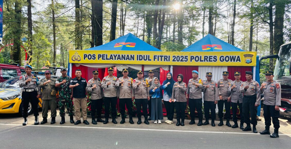 GOWA,ikagawanews.id – Wakapolres Gowa, KOMPOL Gani, S.H., M.H., bersama Pejabat Utama (PJU) Polres Gowa melakukan pemantauan langsung di Pos Pelayanan Operasi Ketupat 2025 yang berlokasi di Malino, Kecamatan Tinggimoncong, serta di Rest Area Bontojai, Kecamatan Parangloe Kabupaten Gowa, Jumat (28/3/2025).