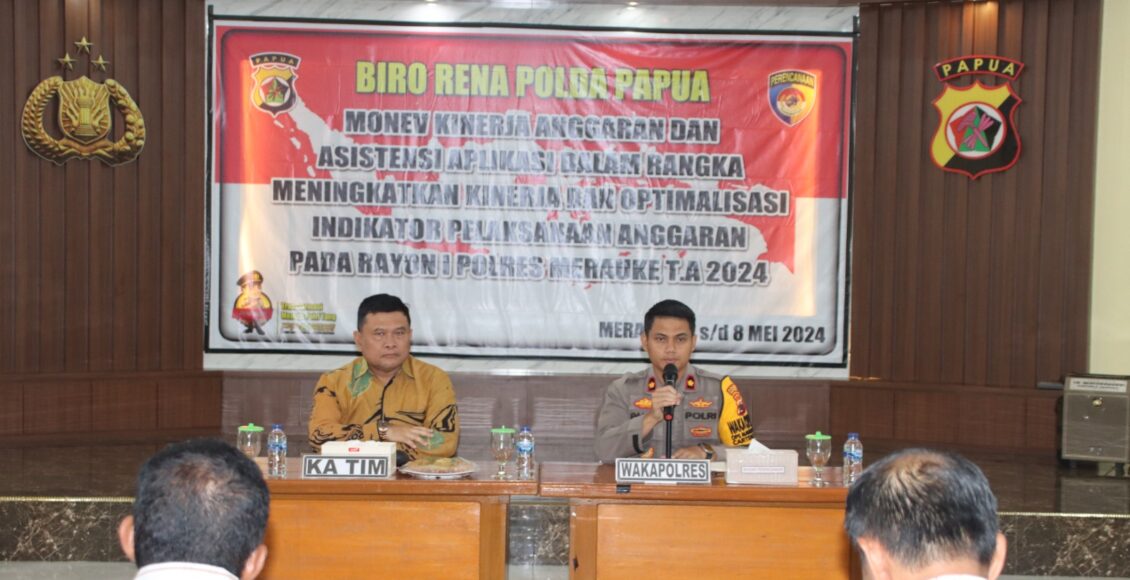 MERAUKE, ikagawanews.id – Kapolres Merauke AKBP I Ketut Suarnaya, SH, SIK melalui Waka Polres Merauke Kompol Viky Pandu Widhapermana, SH, SIK, MH didampingi Ketua TIM Akbp Dicky Saragih, S.Sos membuka kegiatan Monev kinerja anggaran dan Asistensi aplikasi, bertempat di Aula SAR Mapolres Merauke, Propinsi Papua selatan, Senin, 6/5/2024.