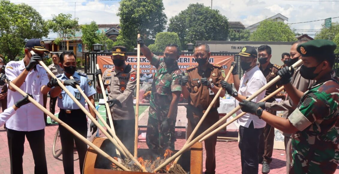 Wakapolres Ngawi Ikuti Pelaksanaan Pemusnahan Barang Bukti