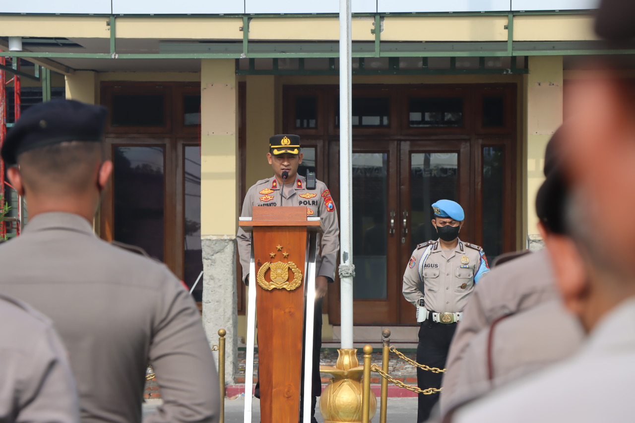 Dalam kegiatan tersebut, Wakapolres menyampaikan bahwa, “Kita harus selalu bersyukur bisa melaksanakan apel dalam keadaan sehat dan kita doakan rekan kita yang sakit agar segera diberi kesembuhan.”
