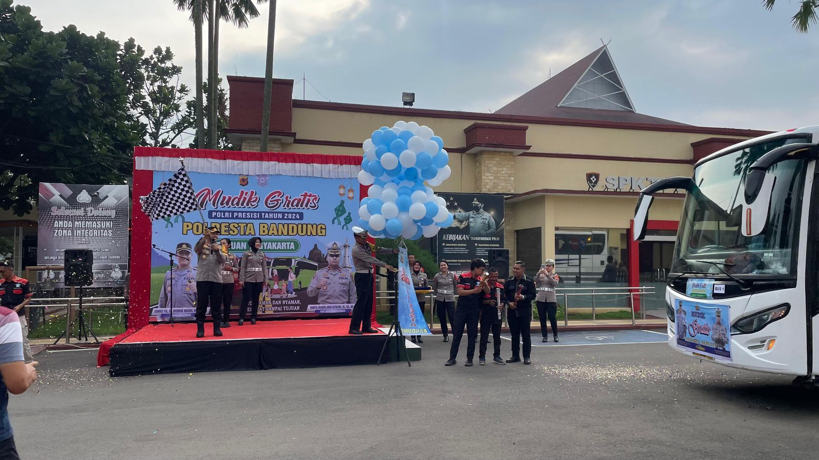 Sebagaimana kebijakan Kapolresta Bandung KBP Dr Kusworo Wibowo SH SIK MH, Polresta Bandung bertekad memberikan pelayanan yang maksimal kepada para pemudik, terutama yang berdomisili di wilayah kabupaten Bandung yang akan mudik ke kampung halamannya. AKBP Maruly Pardede mewakili Kapolresta Bandung melepas para pemudik gratis ini pada hari Jumat, membawa mereka dari Kabupaten Bandung menuju kampung halaman masing-masing.