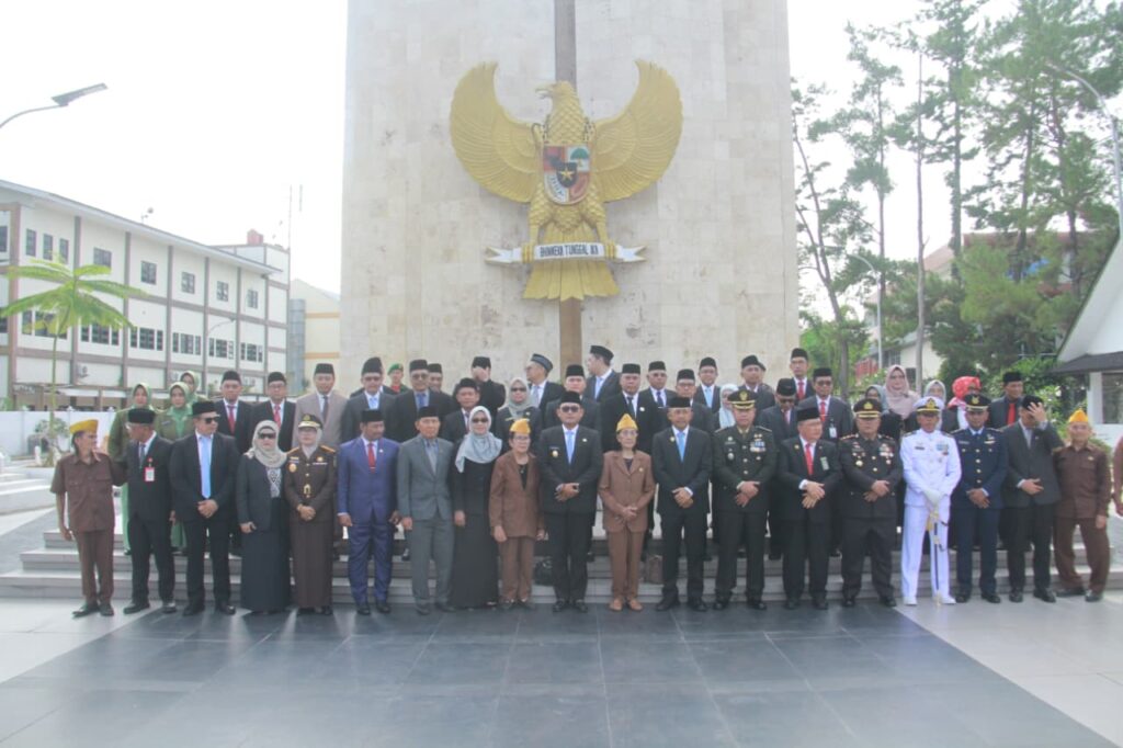 Suasana berlangsung penuh khidmat dan rasa hormat, mencerminkan semangat nasionalisme dan penghargaan mendalam terhadap jasa-jasa para pahlawan yang telah gugur demi bangsa.